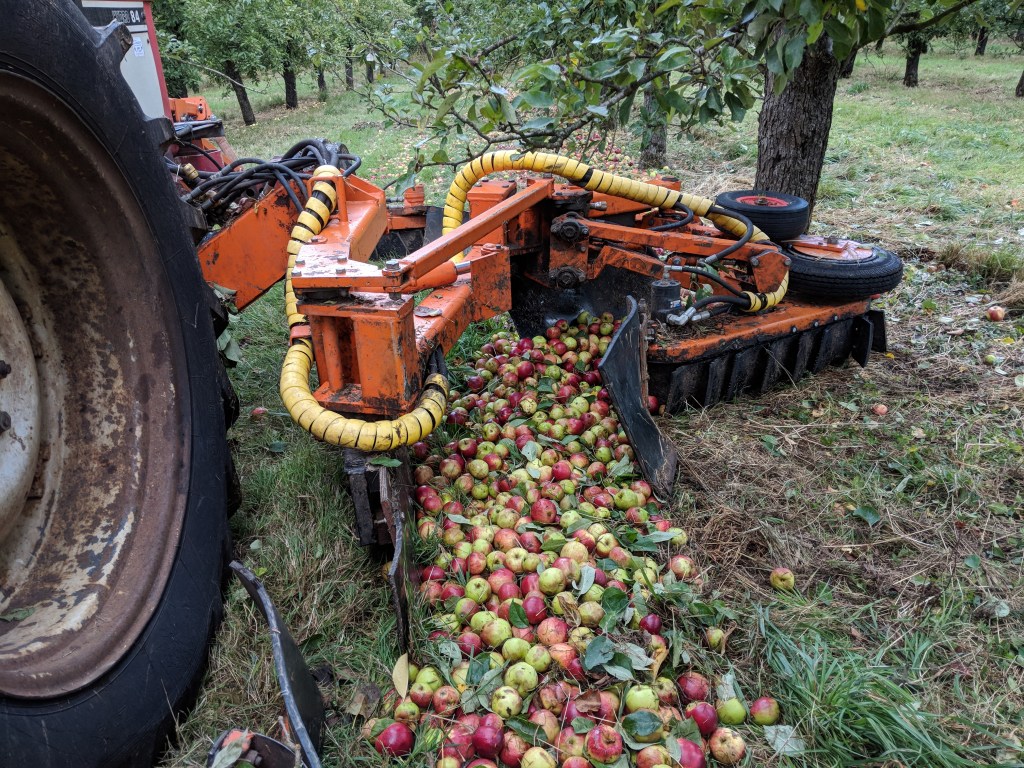 Like most orchards, those 9,000 trees weren’t planted overnight. The orchard has expanded over time but most of the original trees planted in 1973 are still producing. The trees are planted on M106 and M25 rootstocks. The “M” signifies it is a Malling rootstock, which are rootstocks cultivated at the East Malling Research Center in Kent, England. However, you can find these rootstock in many countries around the world. The M25 is a standard tree or what is called very vigorous, which means it will grow to full height. The M106 is a semi-vigorous rootstock that will only grow to around 70% of the standard tree height.