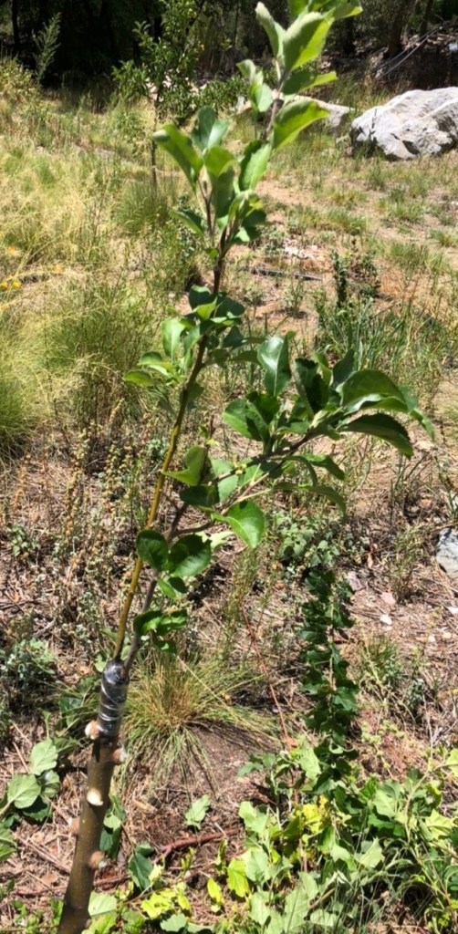 In an earlier Day at the Orchard post, I highlighted my first ever grafting experiment. I took cuttings from the “Super Yellow” seedling apple I found at the orchard and grafted them to some other seedling trees that were producing apples of undesirable value. They were not sweet, not acidic, mushy, and without any tannins to note. I was happy to see that when I cut away the water sprouts from the rootstock, I have severa grafts that are growing. It’s such a wonderful feeling when I think that I was able to take a piece of wood from one tree, stick it on another, and see it flourish. I hope to have several Super Yellow trees producing this unique apple in the coming years.